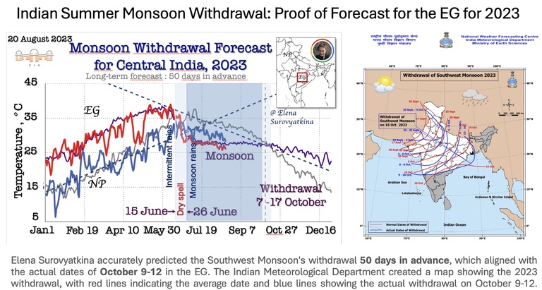 In the face of escalating climate challenges, Prof. Dr. Elena Surovyatkina is making waves in the scientific community with her pioneering work in monsoon forecasting. As a theoretical physicist and a leading expert in the theory of critical phenomena, she integrated theoretical physics with statistical mechanics, she has crafted a unique methodology that can predict the onset of the monsoon up to 40 days in advance and its withdrawal up to 70 days beforehand. Stay tuned for further developments in this ground-breaking research.