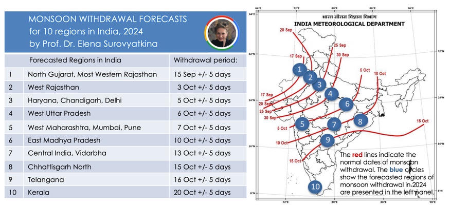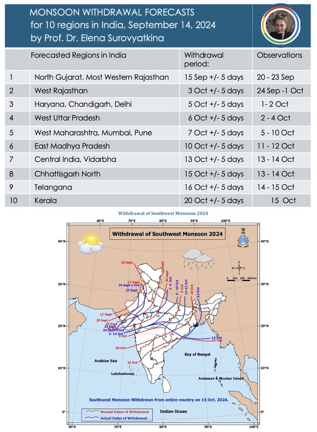 On September 14, 2024, I published a forecast of the monsoon’s withdrawal providing precise withdrawal periods for each region: