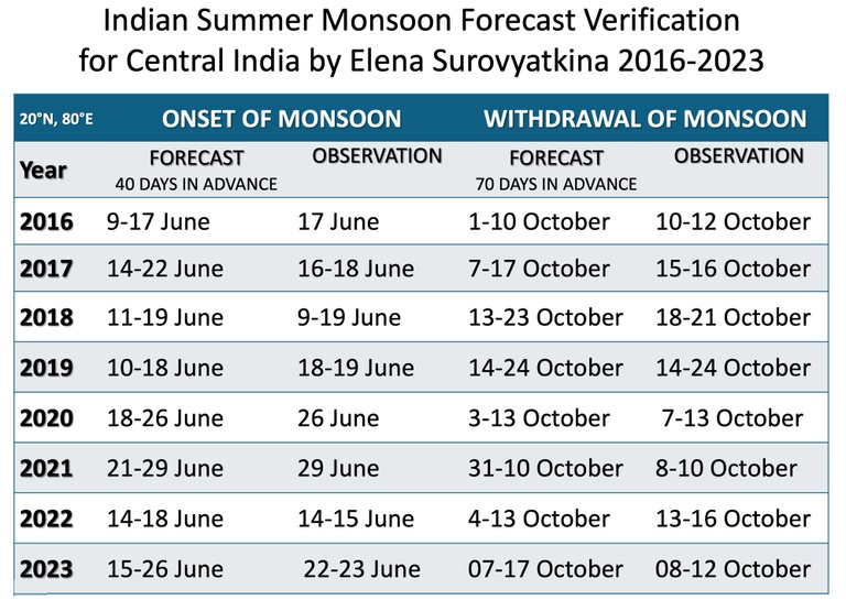 What is important to note is that my forecast of monsoon withdrawal date is the only one available in India. In 2016 and 2017, I issued successful predictions around 70 days in advance. In 2018, for the first time, I performed a successful forecast 80 days in advance.
